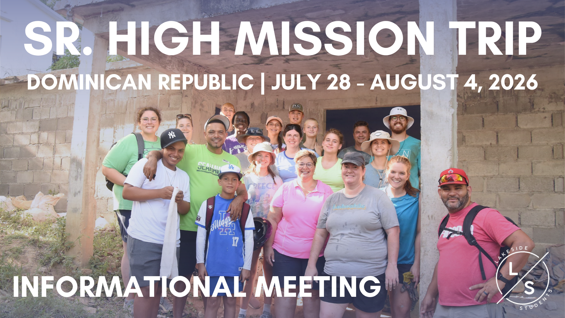 The Sr. High Ministry is going on a mission trip to the Dominican Republic from July 28 through August 4. Students (current 8th-12th grade) and their parents are encouraged to attend this informational meeting to learn more about what the mission trip will look like and hear important details like how students can apply to be team members, how much the trip will cost, and how we plan to fundraise together.