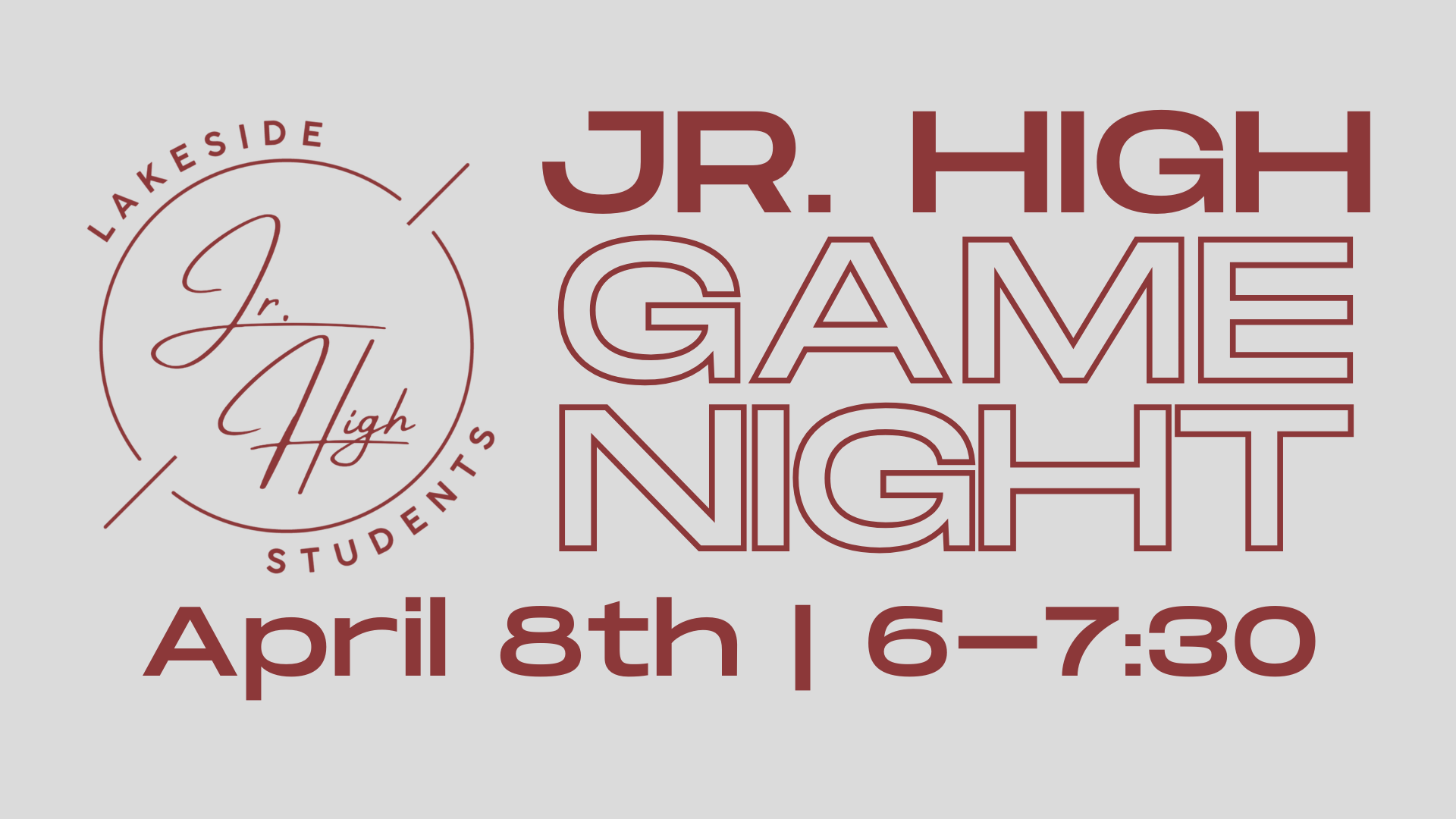 On Wednesday, April 8th, Lakeside's Jr. High Ministry is having a Jr. High Game Night for all 6th-8th graders! This will be a great night for inviting friends! We hope all students can make it for the night of fun!